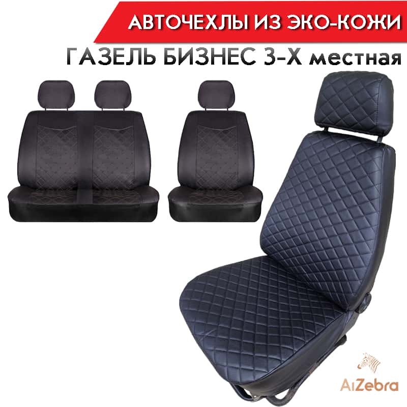 Авточехлы Газель трехместная экокожа черная с красной ниткой ромб Офис