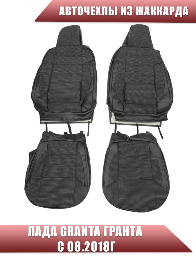 Авточехлы Лада Granta Гранта 2/3 с 08.2018г жаккард черный с боковыми поддержками