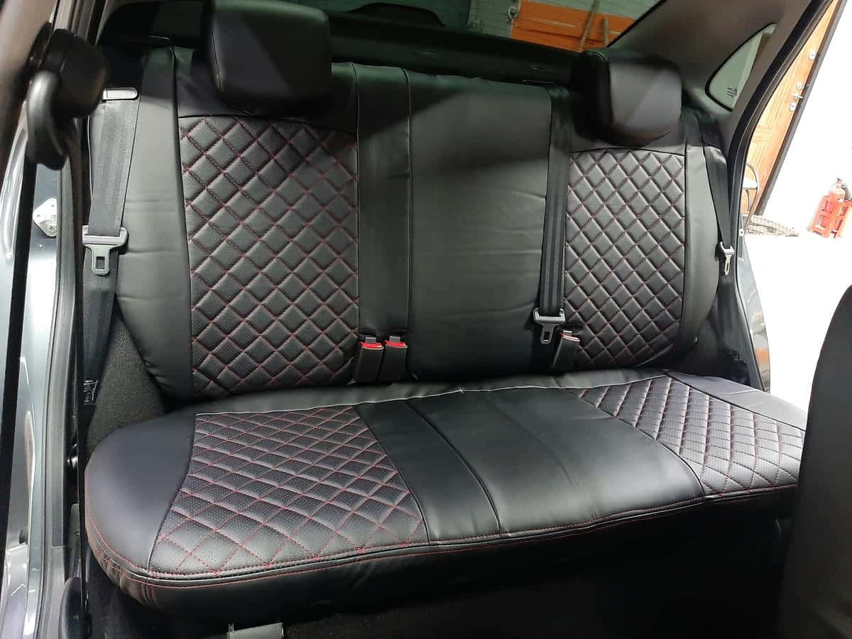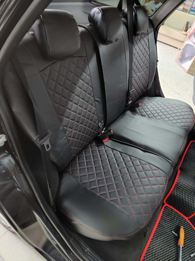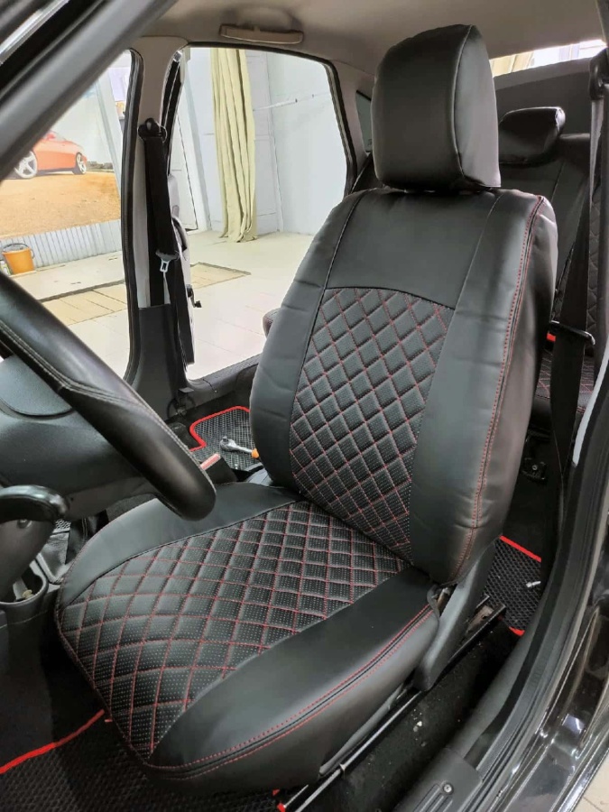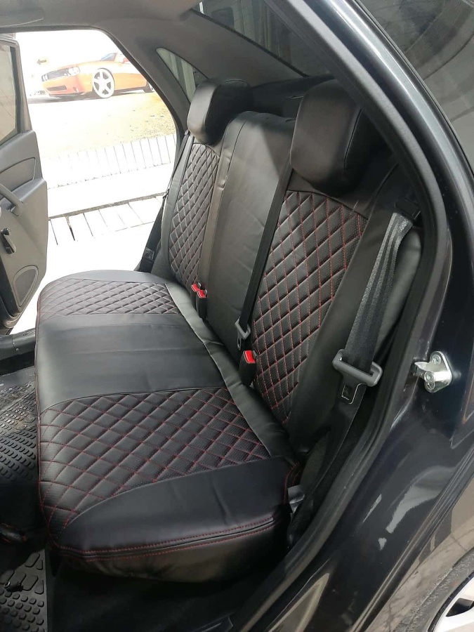 Авточехлы Лада Granta Гранта до 08.2018г 1/1 2/3 экокожа черная с красной ниткой ромб