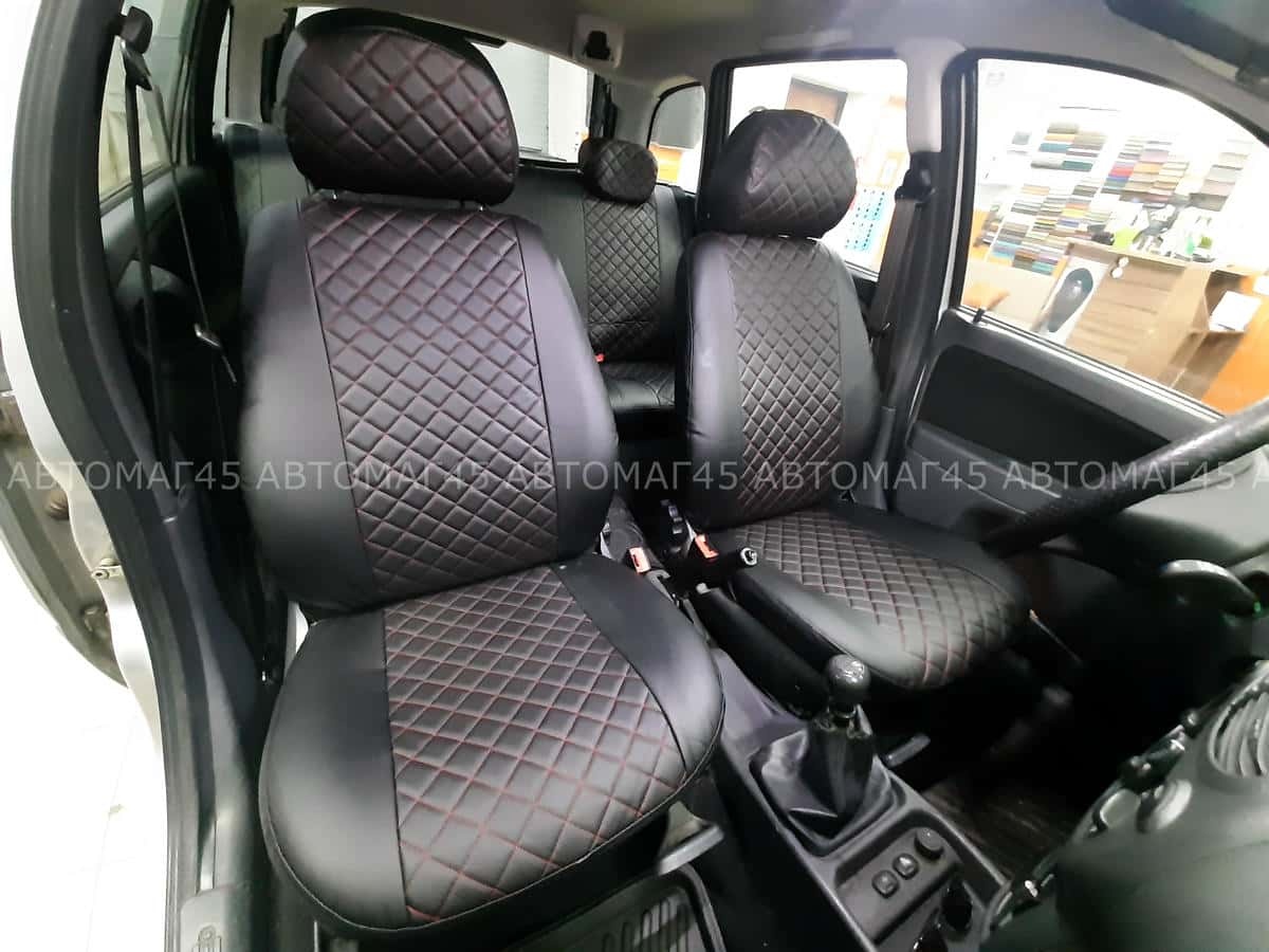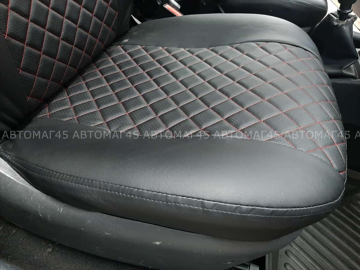 Авточехлы Лада Kalina Калина Калина2 экокожа черная с красной ниткой ромб Барс