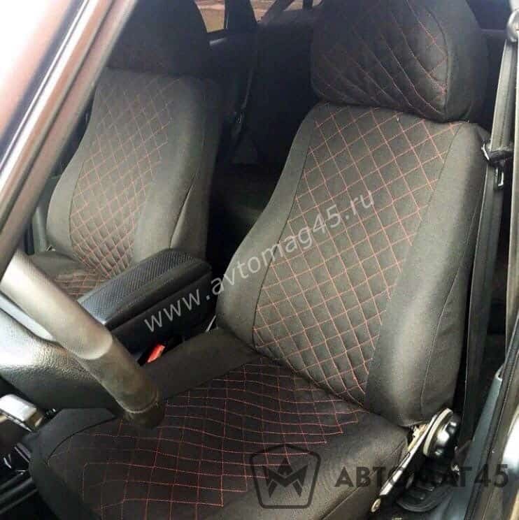 Авточехлы Нива трехдверная до 11.2019г 21213 21214 жаккард черный с красной ниткой стандарт Барс