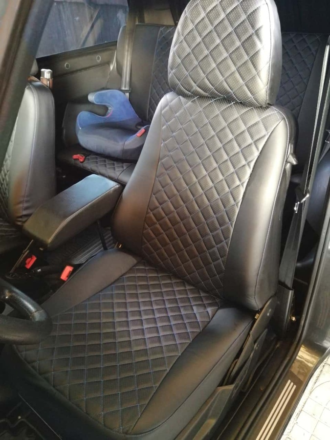 Авточехлы Нива трехдверная до 11.2019г 21213 21214 экокожа черная с красной ниткой ромб Барс