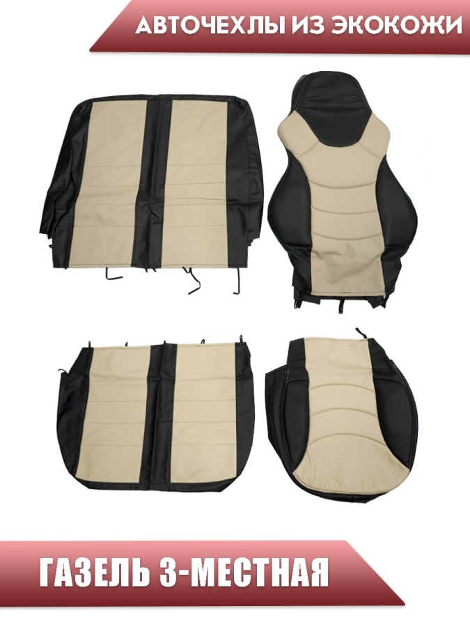 Авточехлы Recaro Газель трехместная экокожа черная бежевая СанАвто