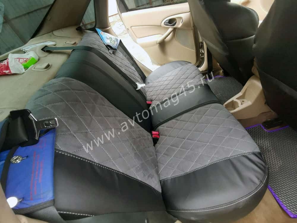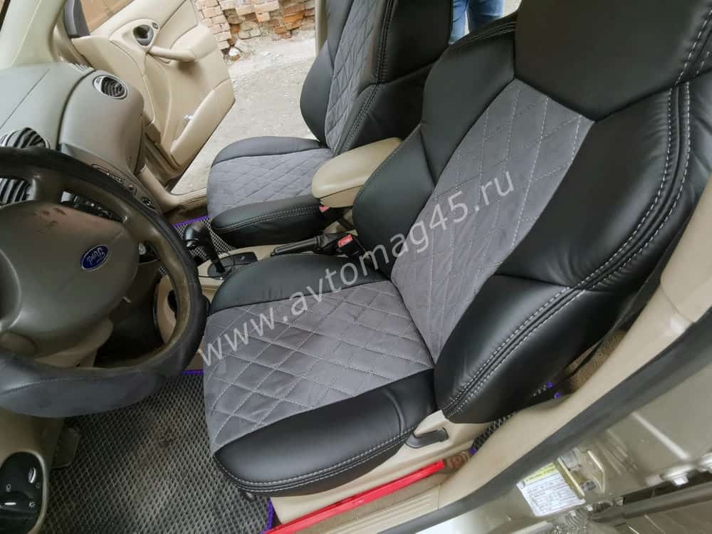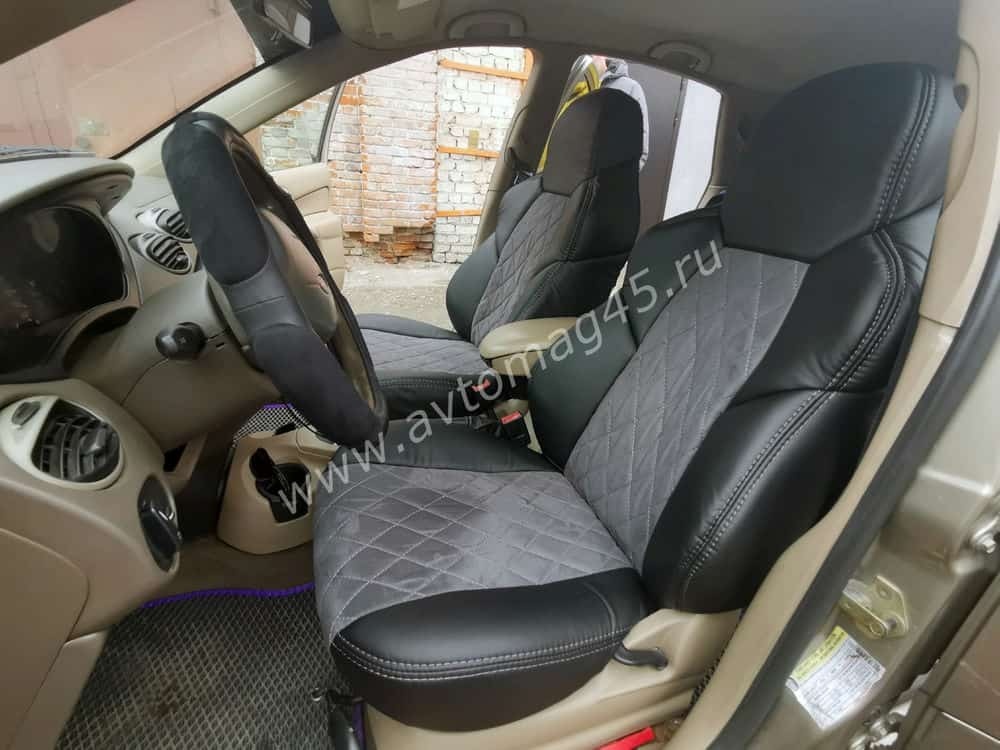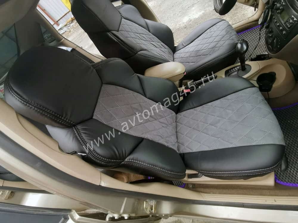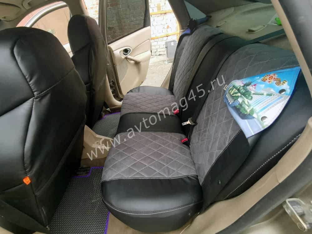 Драйв чехлы универсальные экокожа ромбы черный замша темно-серая комплект