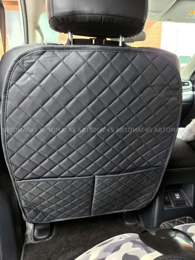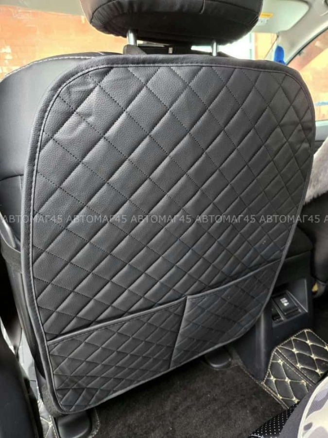 Maximal Защита заднего сиденья с карманом экокожа черная c черной ниткой ромб соты 62х49см