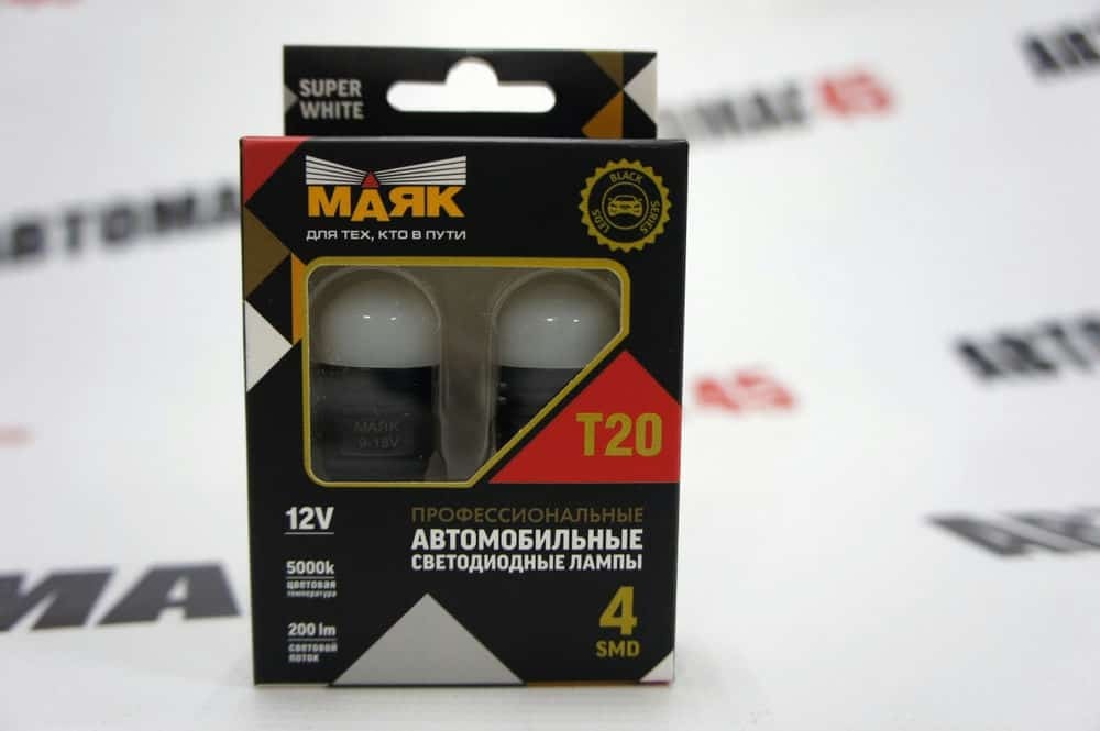 Маяк лампа светодиодная W21W T20 4 SMD без цоколя 5000K 200Lm одноконтактная белая 2шт