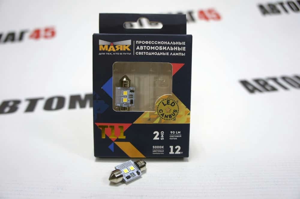 Маяк лампа светодиодная С10W T11 31мм 2 SMD 5000K 90Lm 1 шт