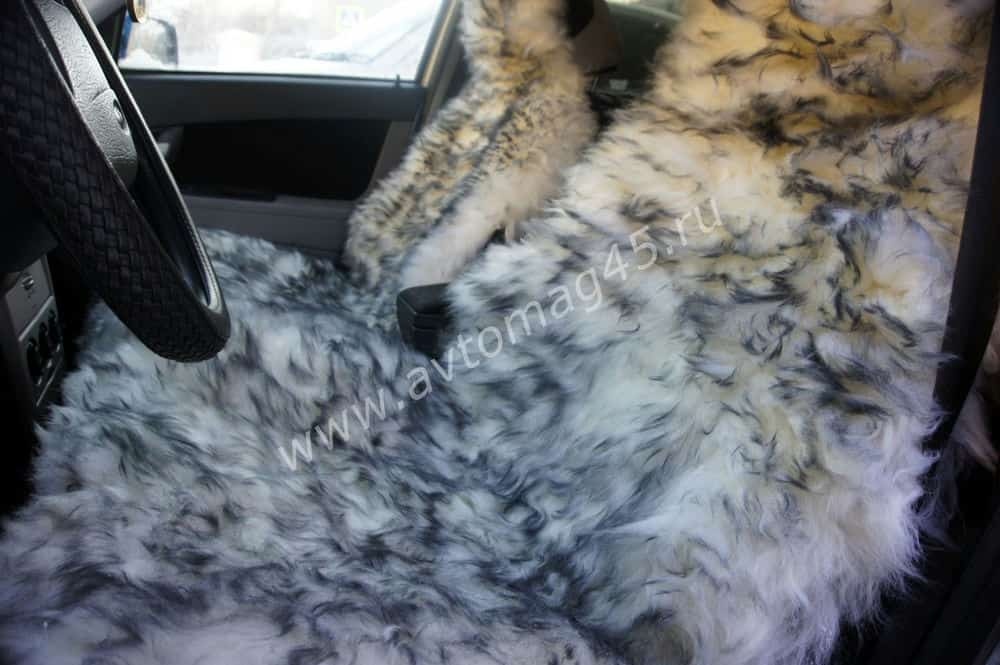 Накидка длинный ворс пепельный на коже 140х55см 1шт