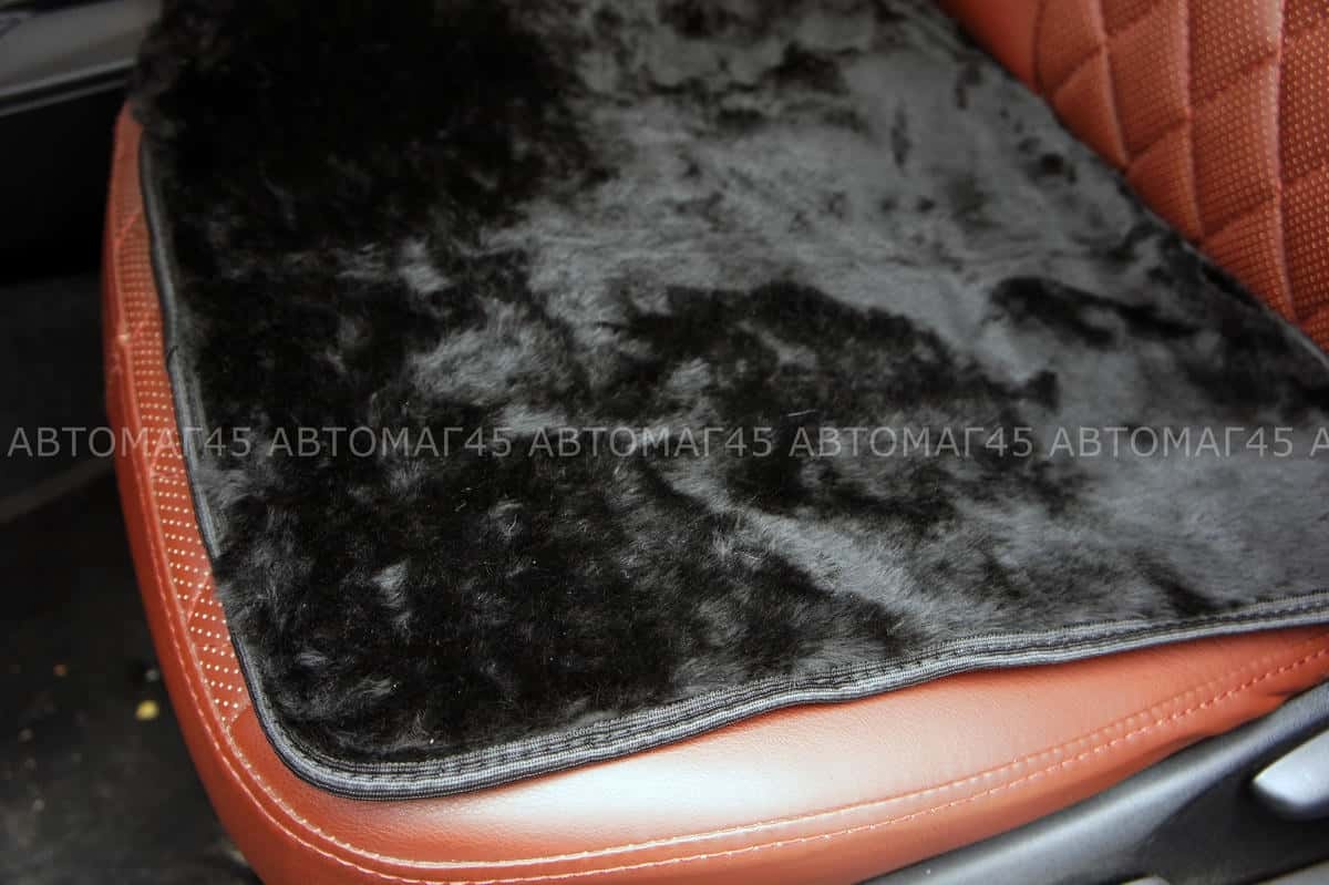 Накидка подушка на сиденье короткий ворс на силиконе черный шерсть 40%