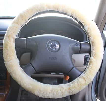 Оплетка руля натуральный мех на коже короткий ворс мутон бежевый