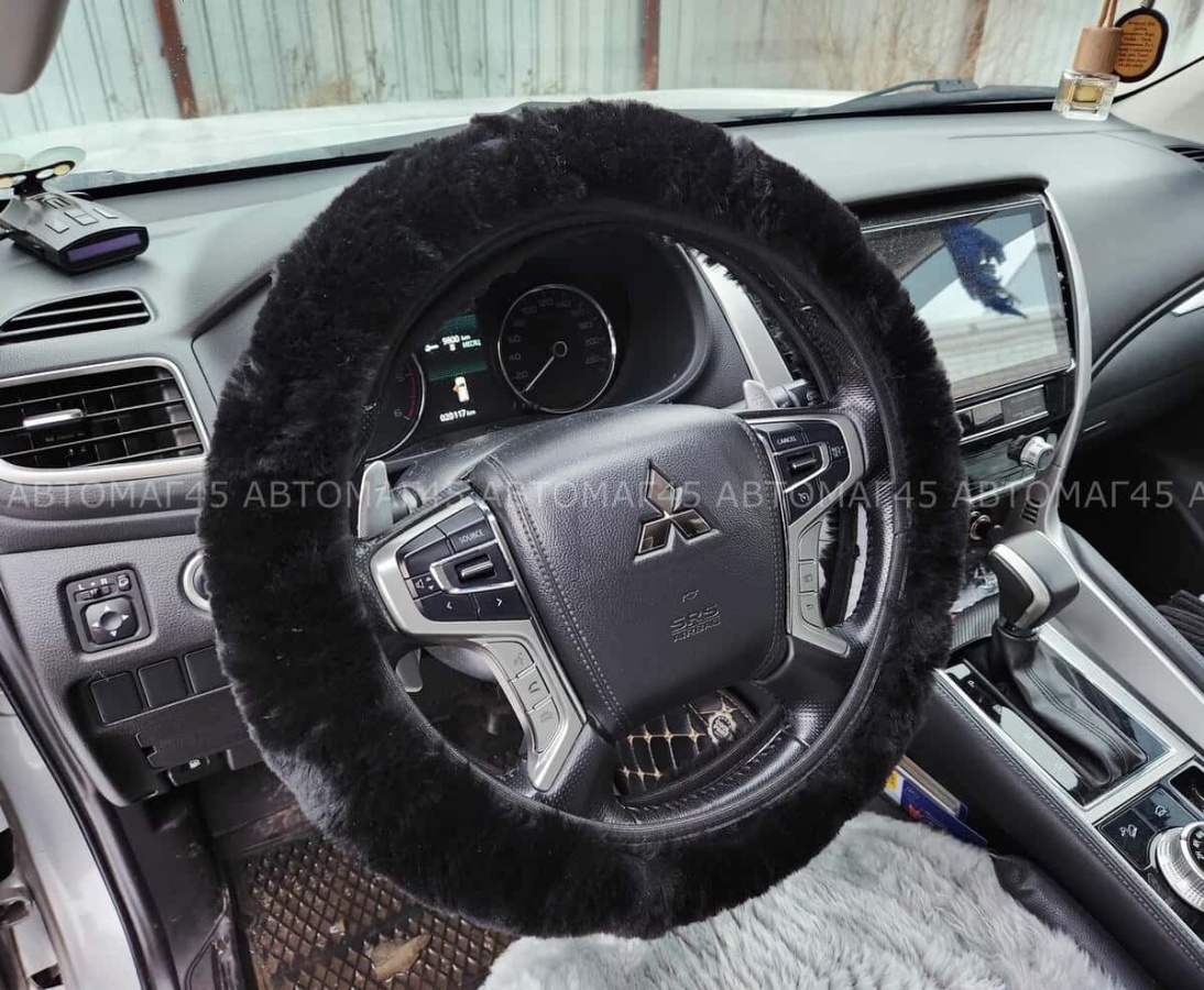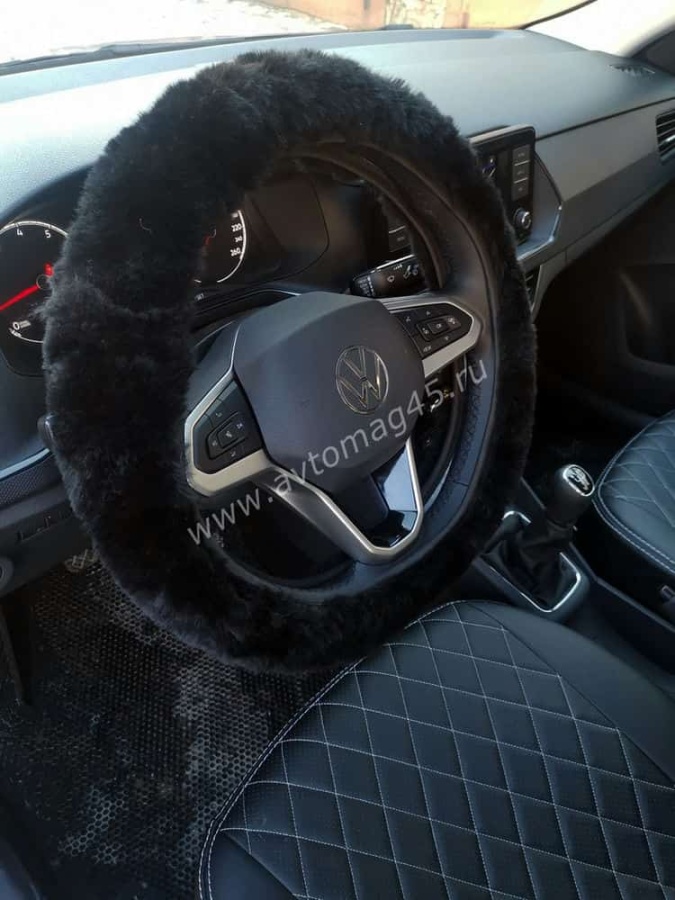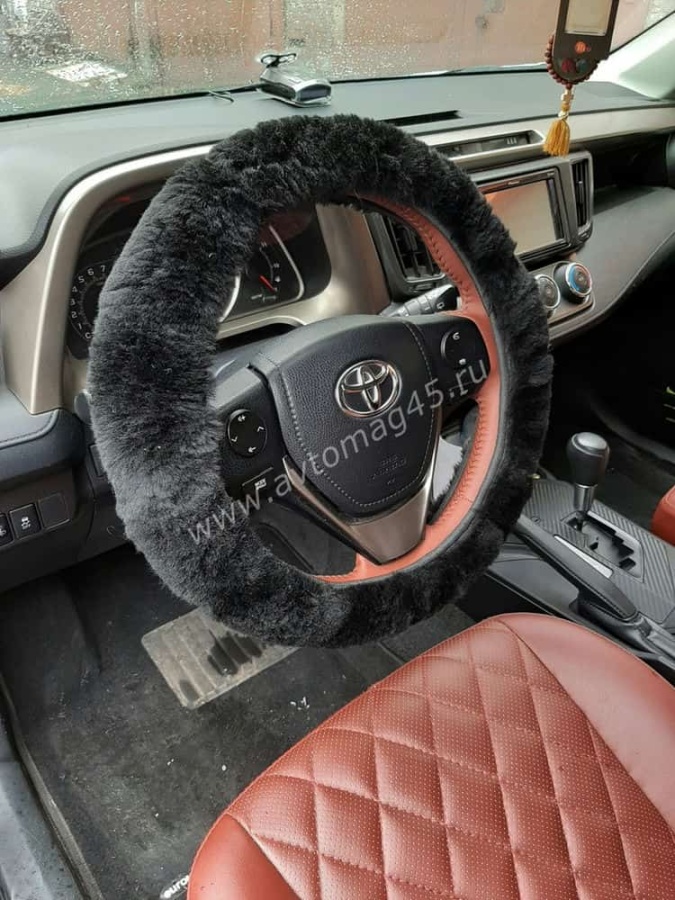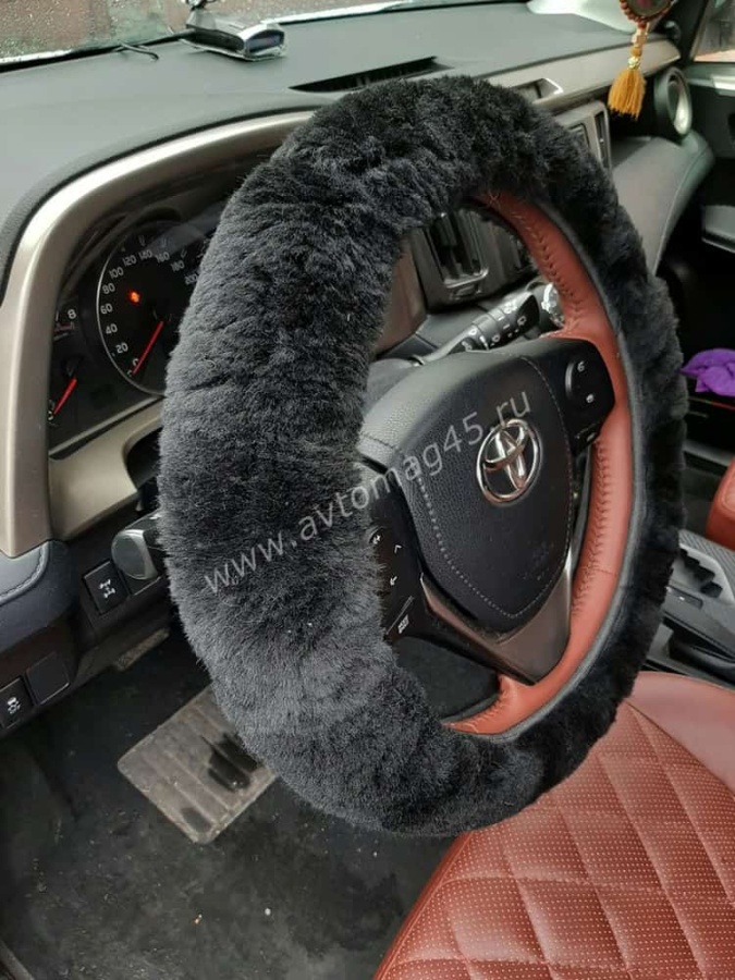 Оплетка руля натуральный мех на коже короткий ворс мутон черный
