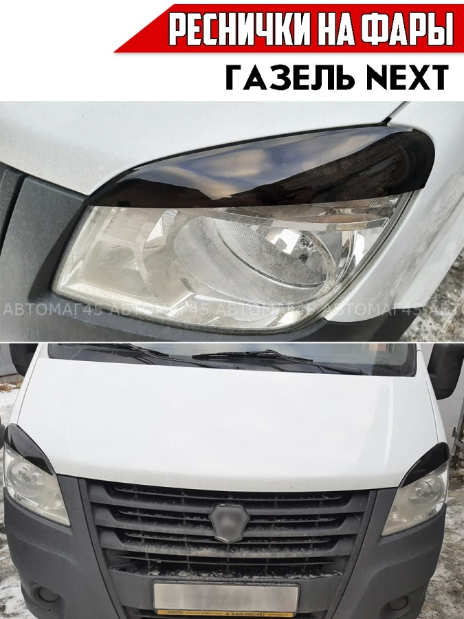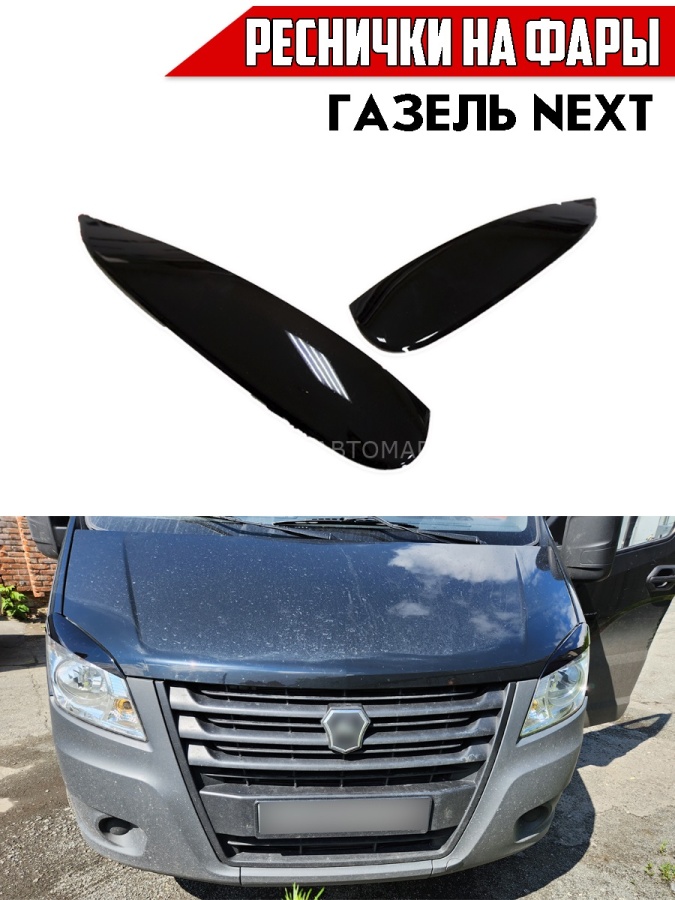 Реснички накладки на фары для Газель Некст GAZ NEXT черные 2шт