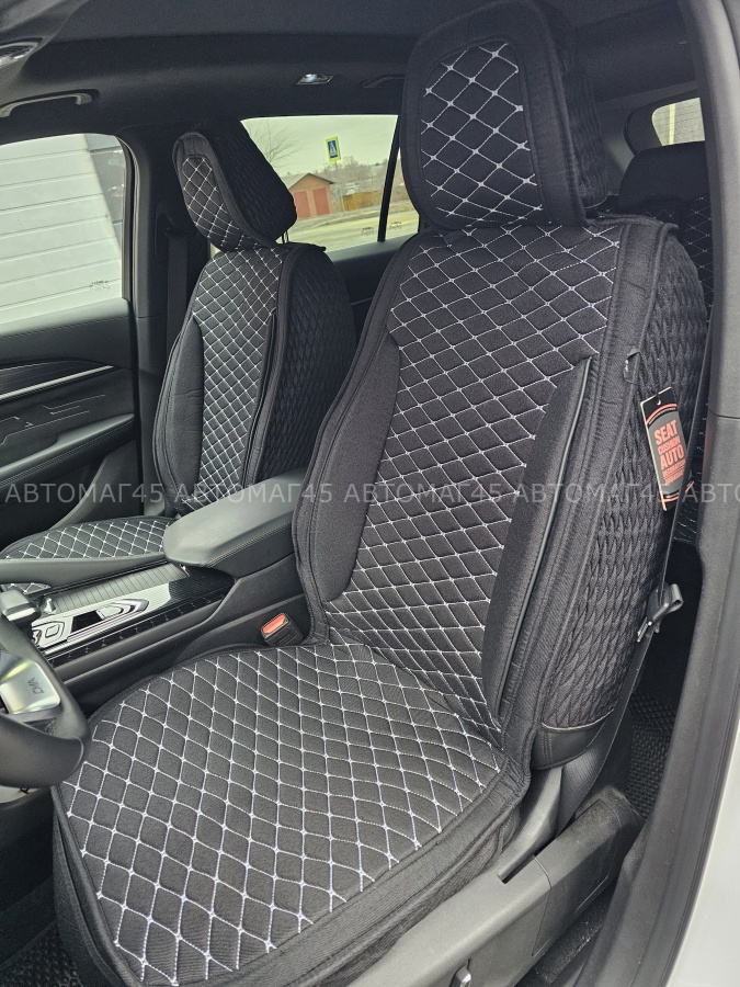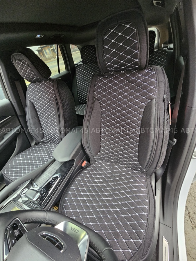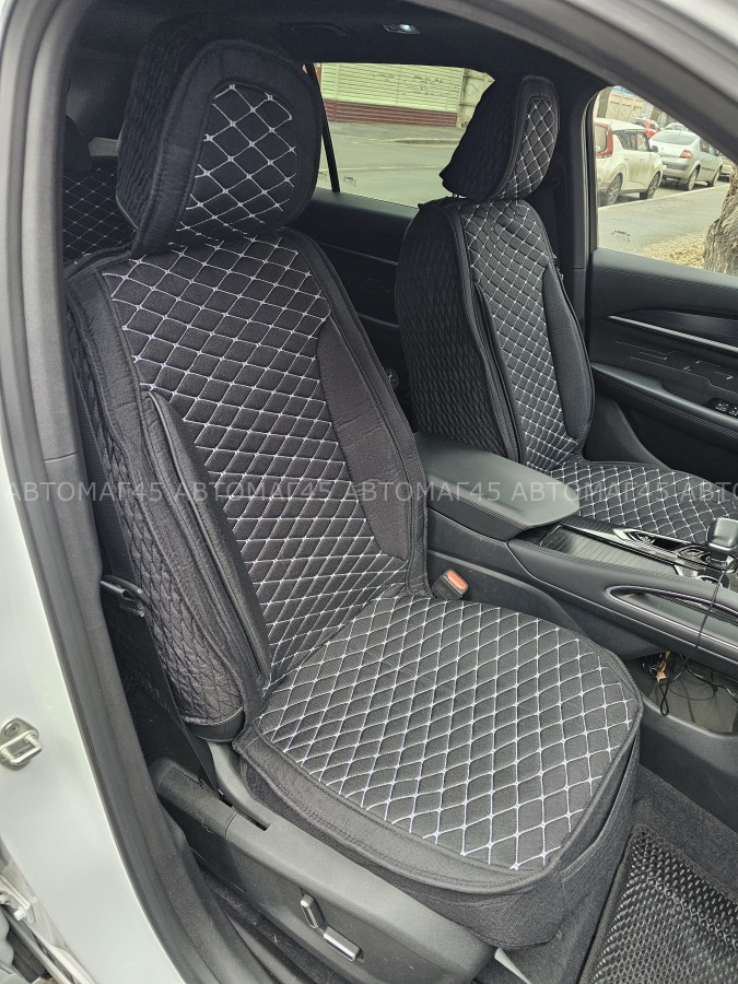 Чехлы накидки на сиденье лен 2Д черный бежевая нитка комплект 5шт