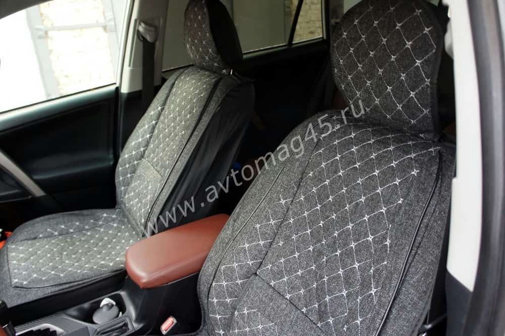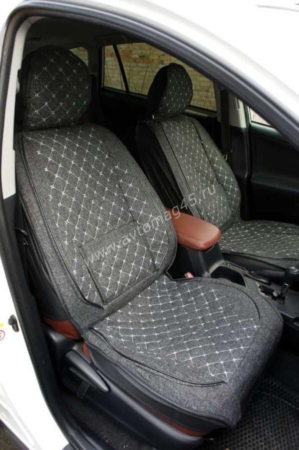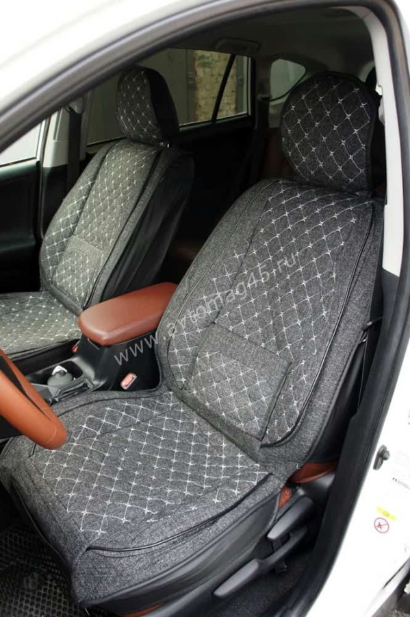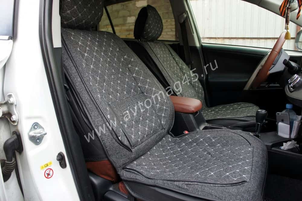 Чехлы накидки на сиденье лен форма 2Д серый передние 2шт