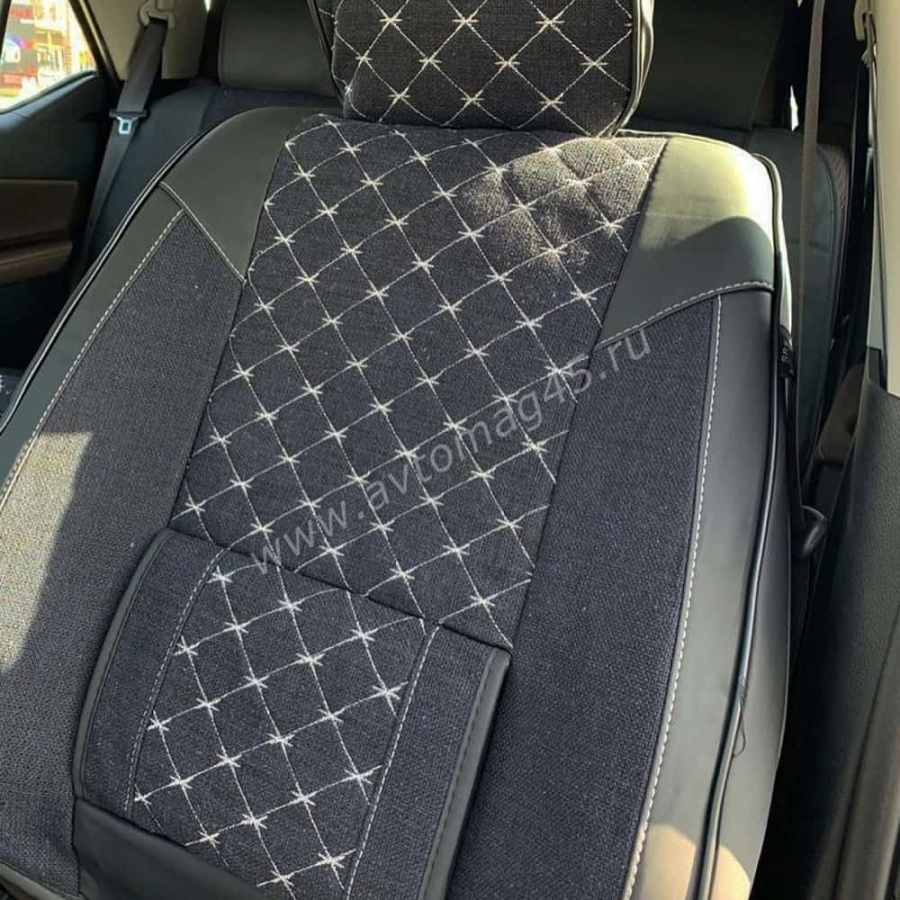 Чехлы накидки на сиденье лен форма 2Д черный с белой/бежевой ниткой с поддержками комплект 5шт