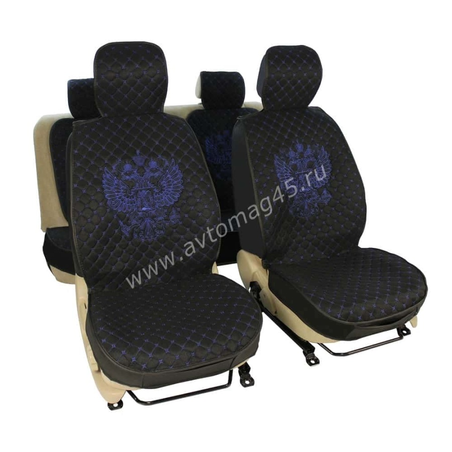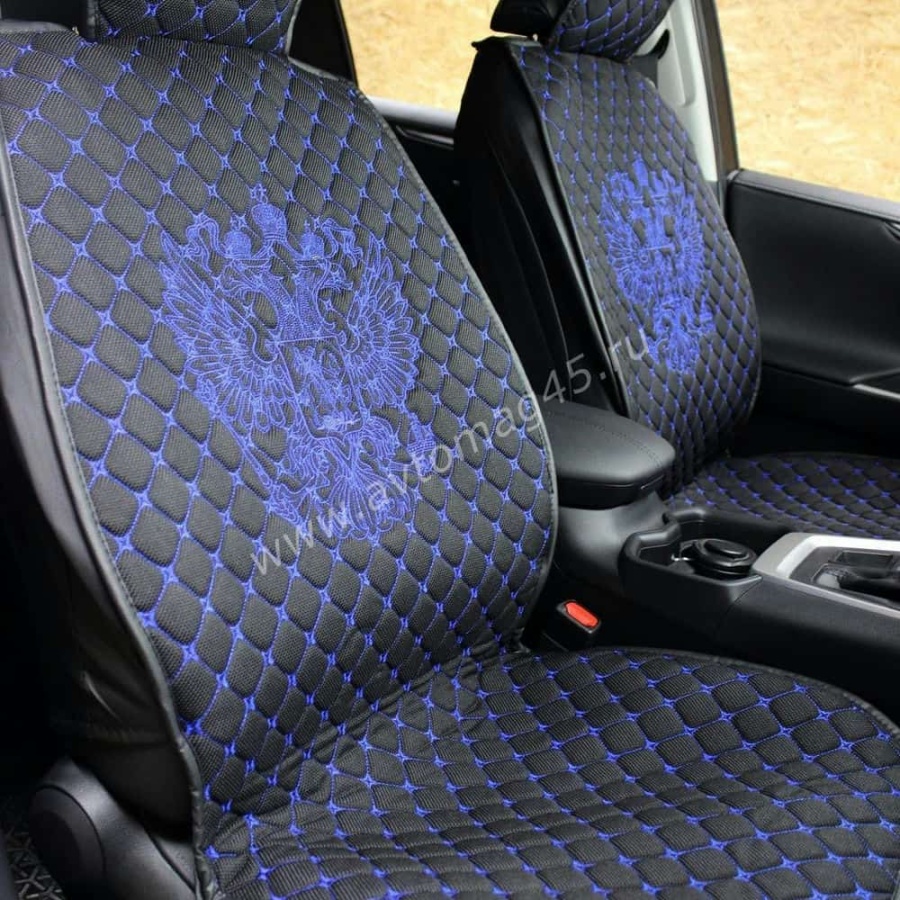 Чехлы накидки на сиденье серия G лен черный синяя нитка комплект 5 шт