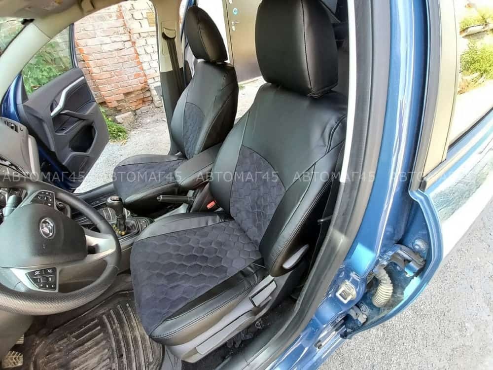 Авточехлы Kia Rio с 2017г Rio X-Line с 2017г Hyundai Solaris c 2017г экокожа алькантара черная соты