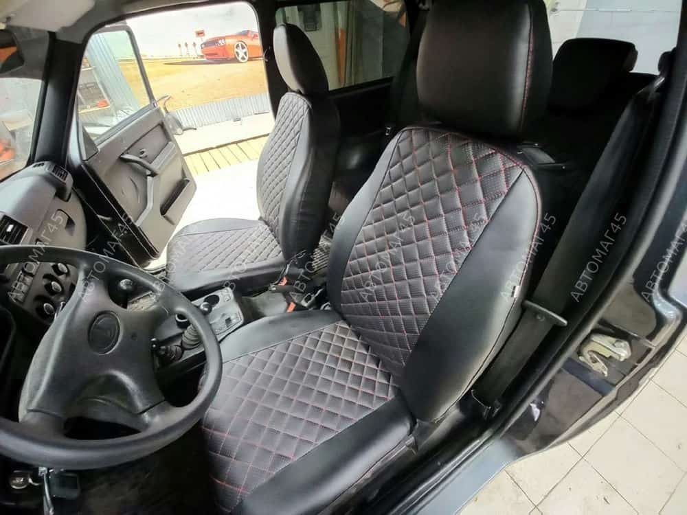 Авточехлы Нива 4x4 урбан бронто легенд 2019-2026г экокожа черная с красной ниткой ромб Барс