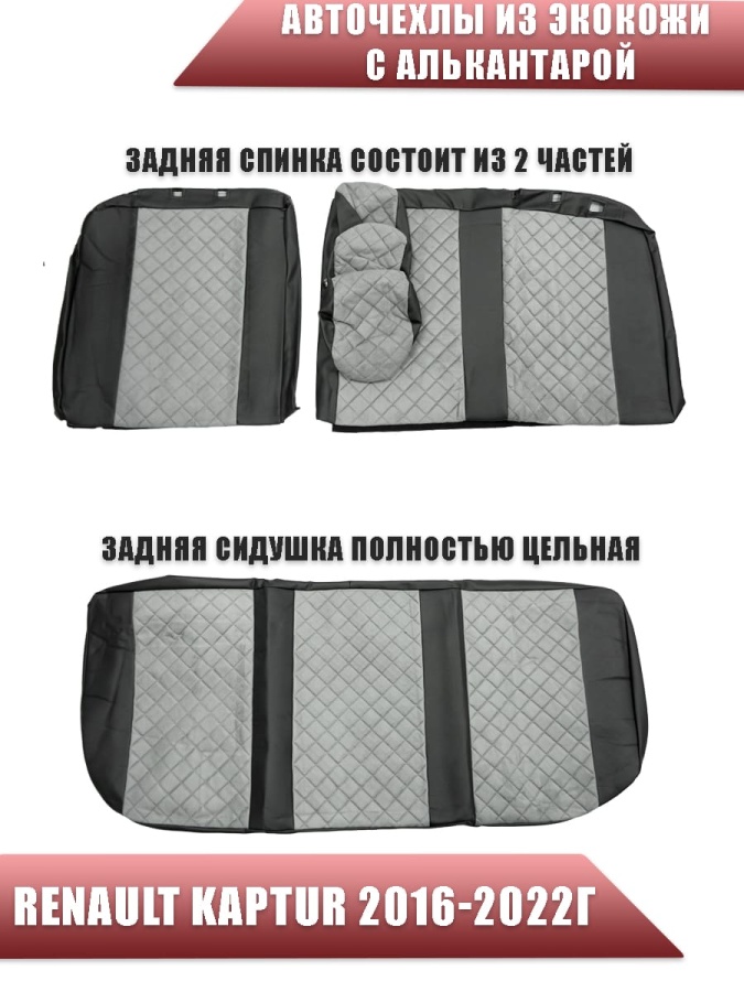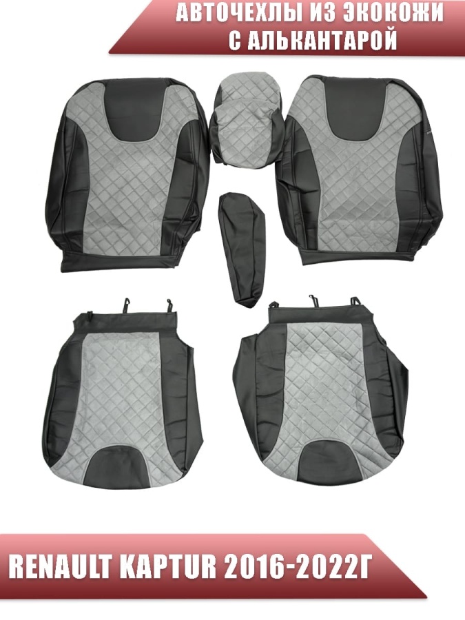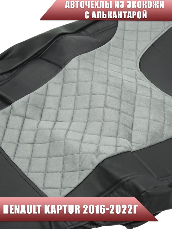 Авточехлы Renault Kaptur Рено Каптур 2016-2022г экокожа алькантара черная середина серая ромб