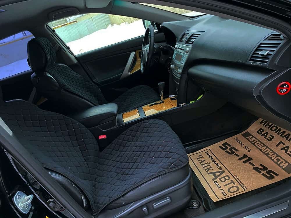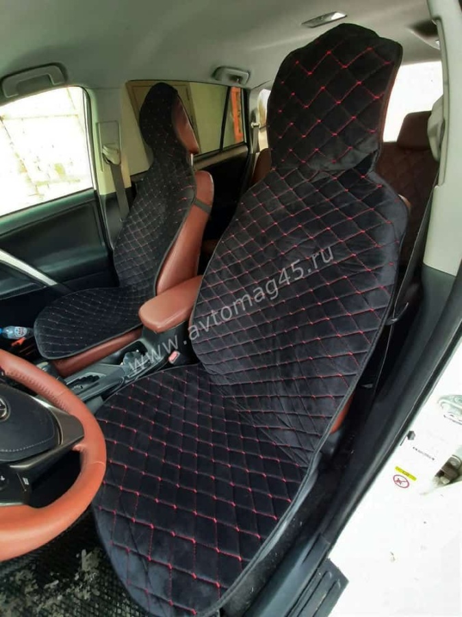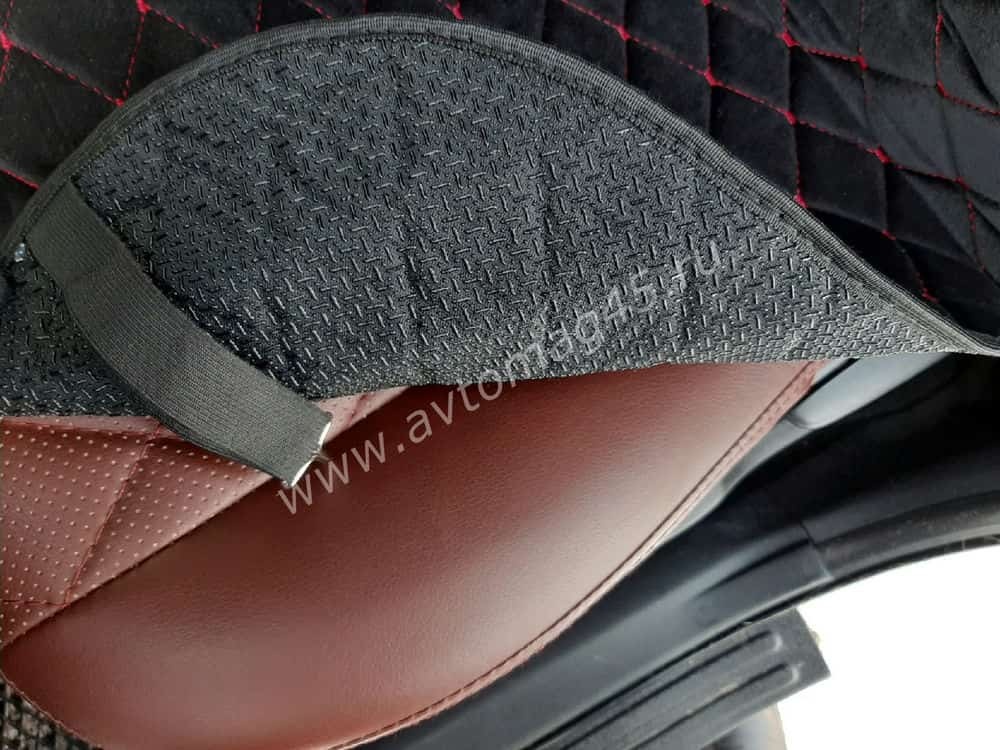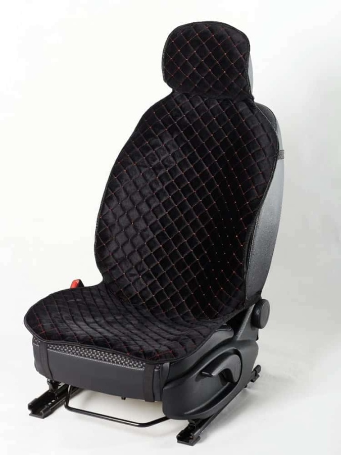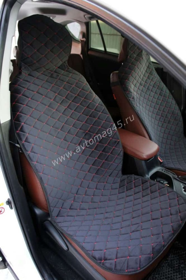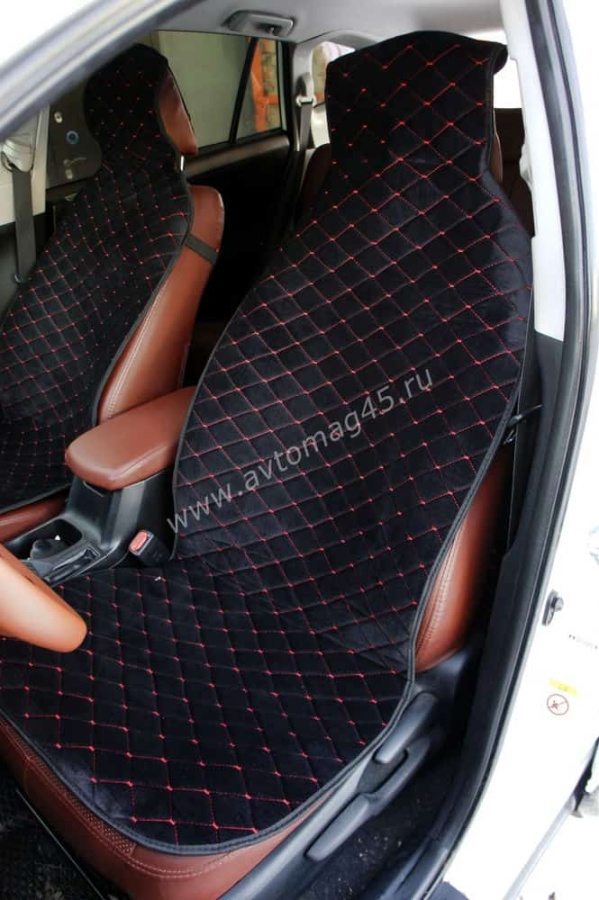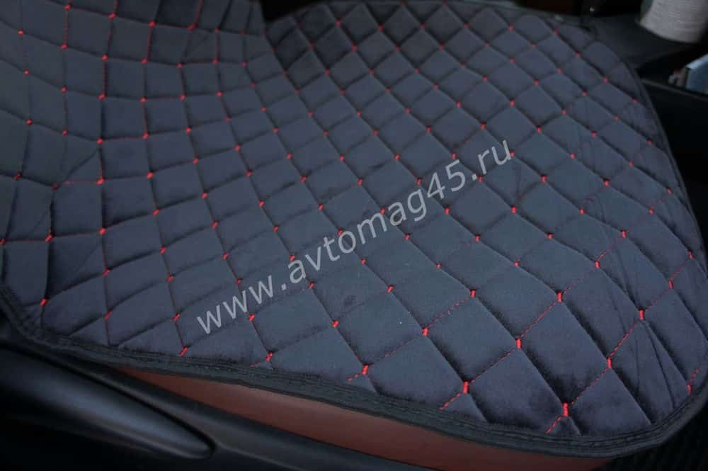 Автотренд Накидки на сиденье на силиконе без боков велюр черный c красной ниткой 2шт