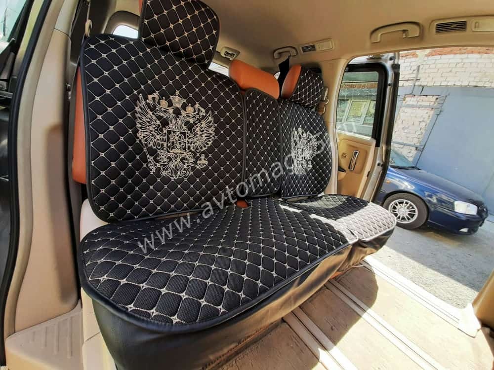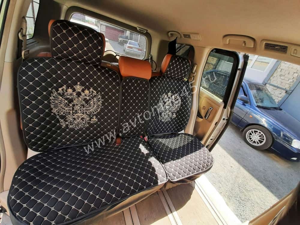 Чехлы накидки на сиденье серия G лен черный бежевая/белая нитка комплект 5 шт