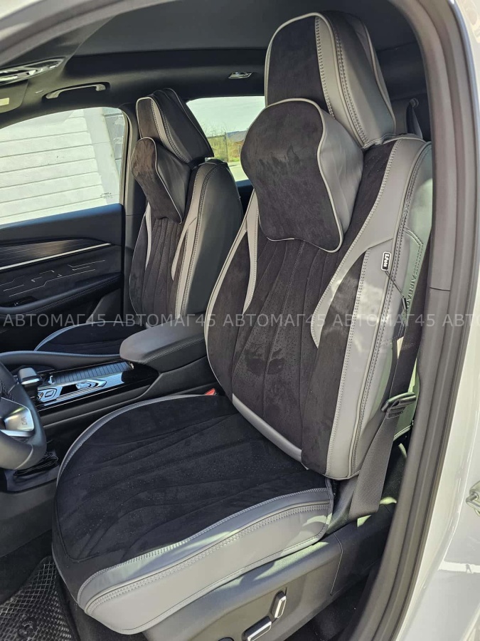 Чехлы накидки на сиденье экокожа+алькант серый трансформер с отдельным подголовником комплект Fota
