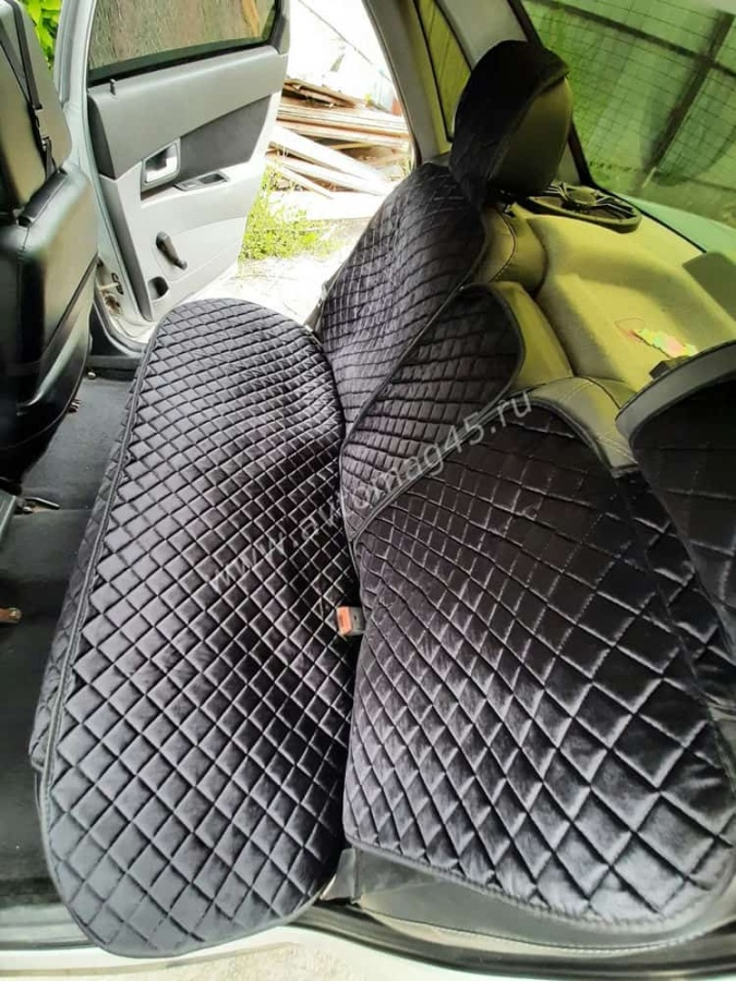 888-а Накидки на сиденье с боками задний ряд велюр черный 2шт