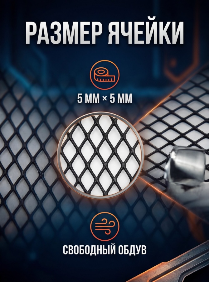 Rival защитная сетка на решетку радиатора алюминиевая ячейка 100х25см черная