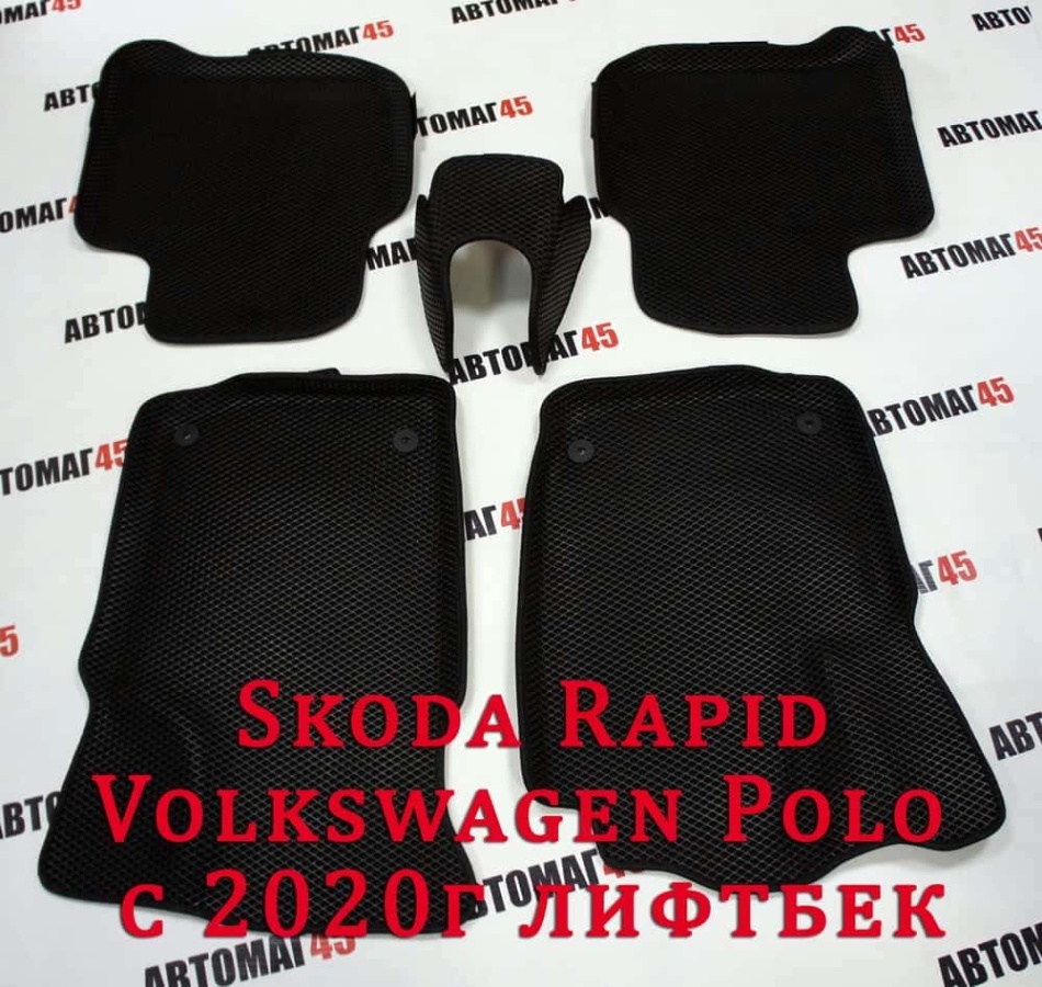 EVA ЭВА 3D коврики в салон Volkswagen Polo 20-22г лифтбэк Skoda Rapid 12-23г черн рис ромб компл 5шт