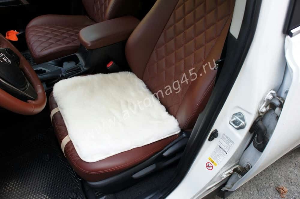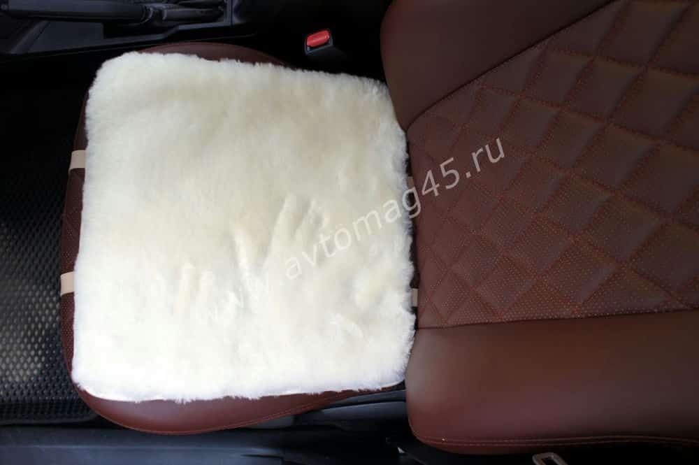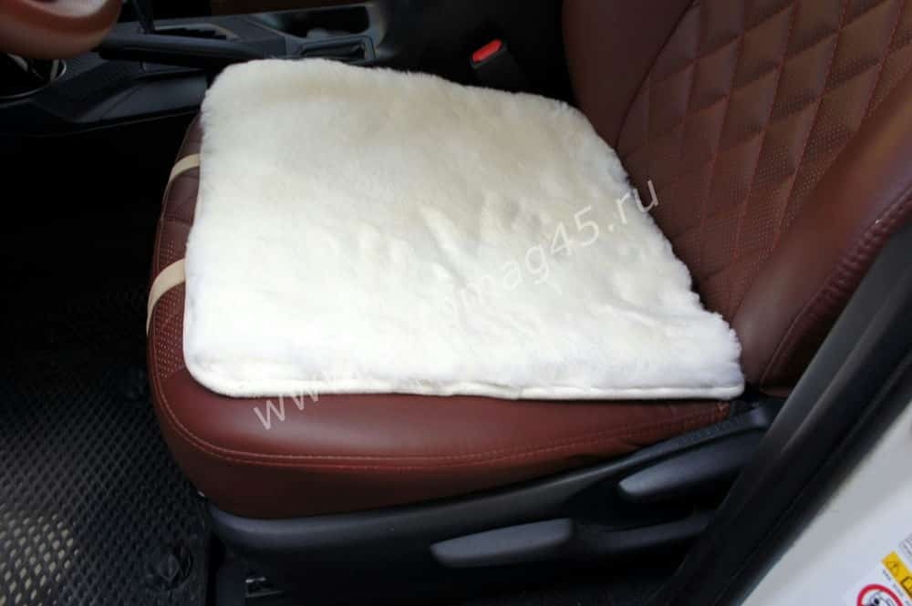 Накидка подушка на сиденье короткий ворс белый 45х45см