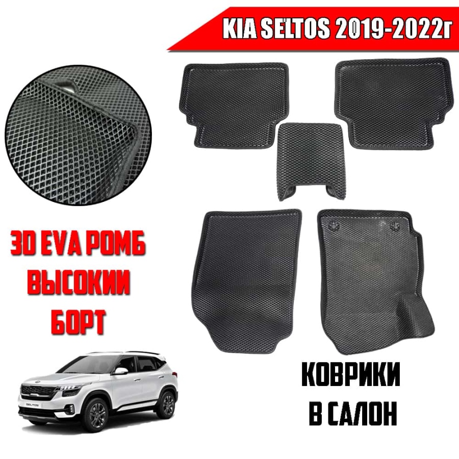 BORATEX коврики в салон 3D EVA ЭВА Kia Seltos 2019-2022г черные рисунок ромб комплект 5шт