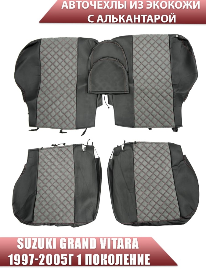 Авточехлы Suzuki Grand Vitara Сузуки Гранд Витара 97-05г 5-двер экокожа черная алькант ромб 50/50