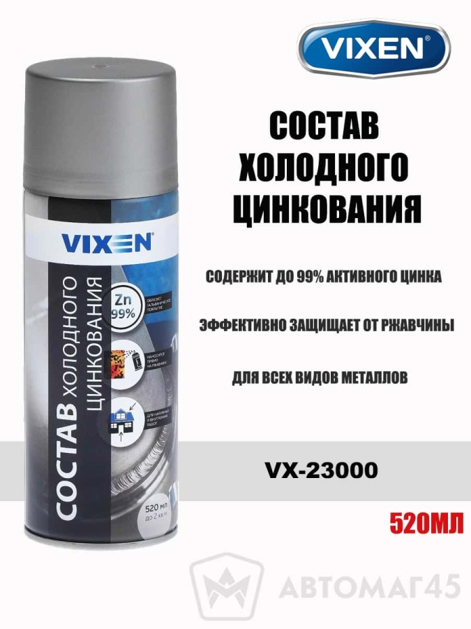 VIXEN Антикоррозийное покрытие Состав холодного цинкования 99% аэрозоль 520мл