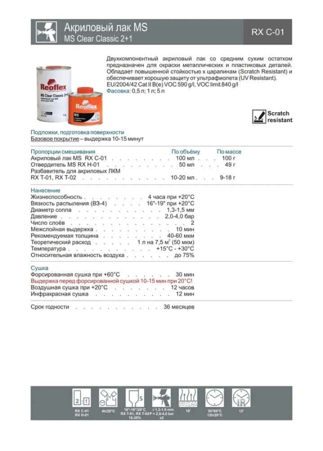 Reoflex лак акриловый МS 2+1 1л+0,5л