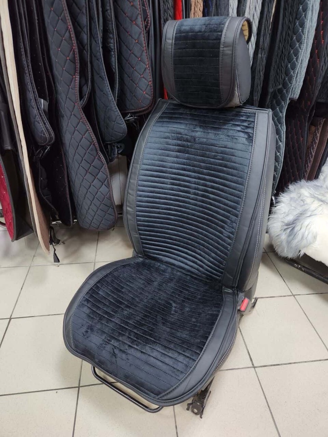 Страйпс Накидки на сиденье без спинки велюр полоска черный комплект 5шт