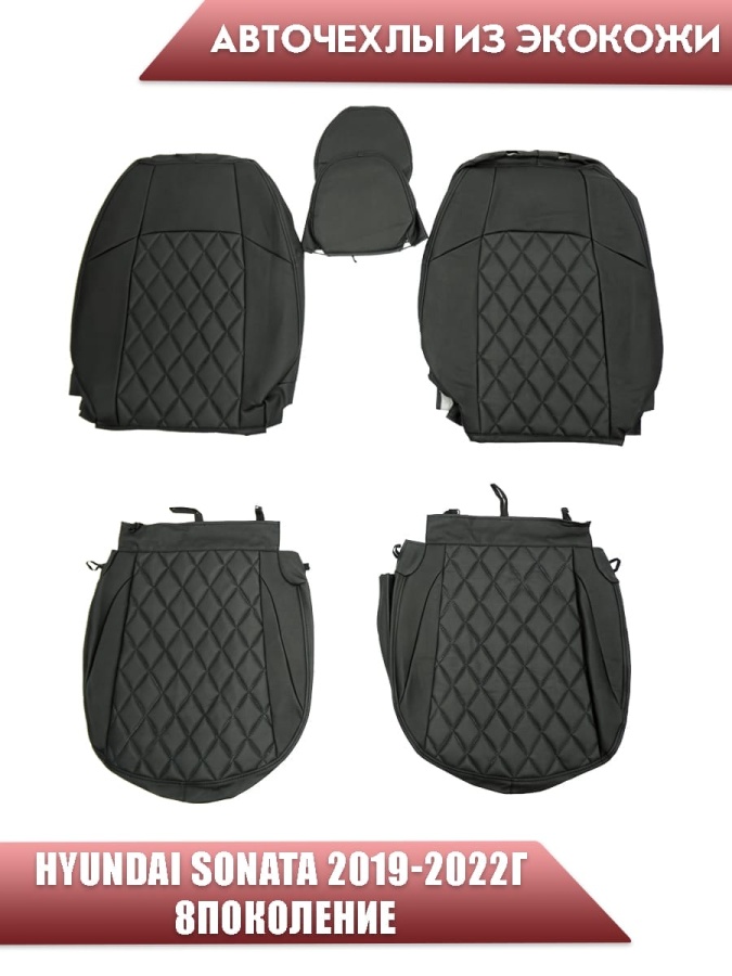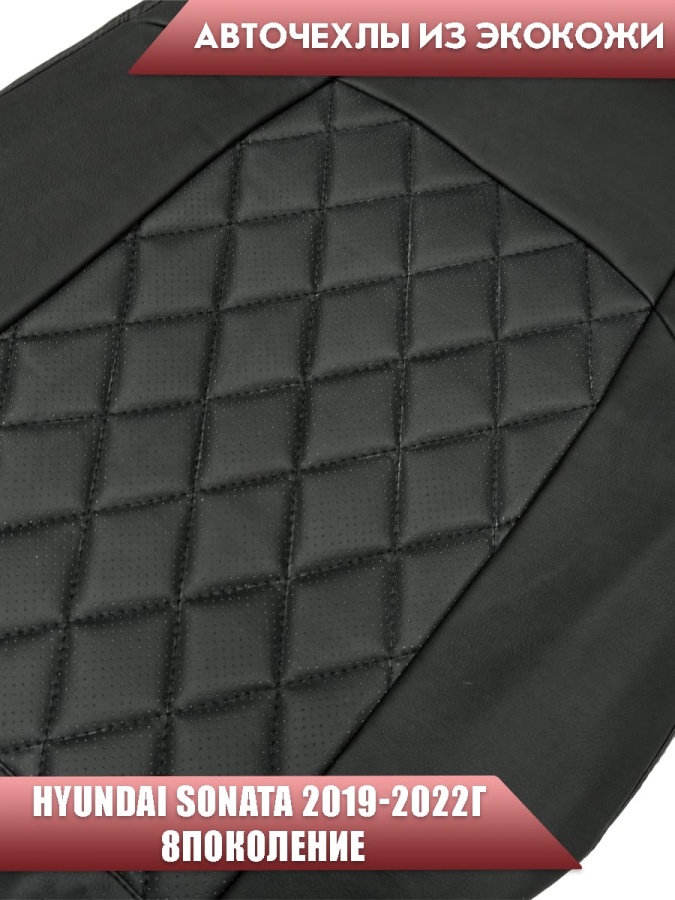 Авточехлы Hyundai Sonata DN8 Хендай Соната 2019-2022г 8пок экокожа черная черная нить ромб Динас