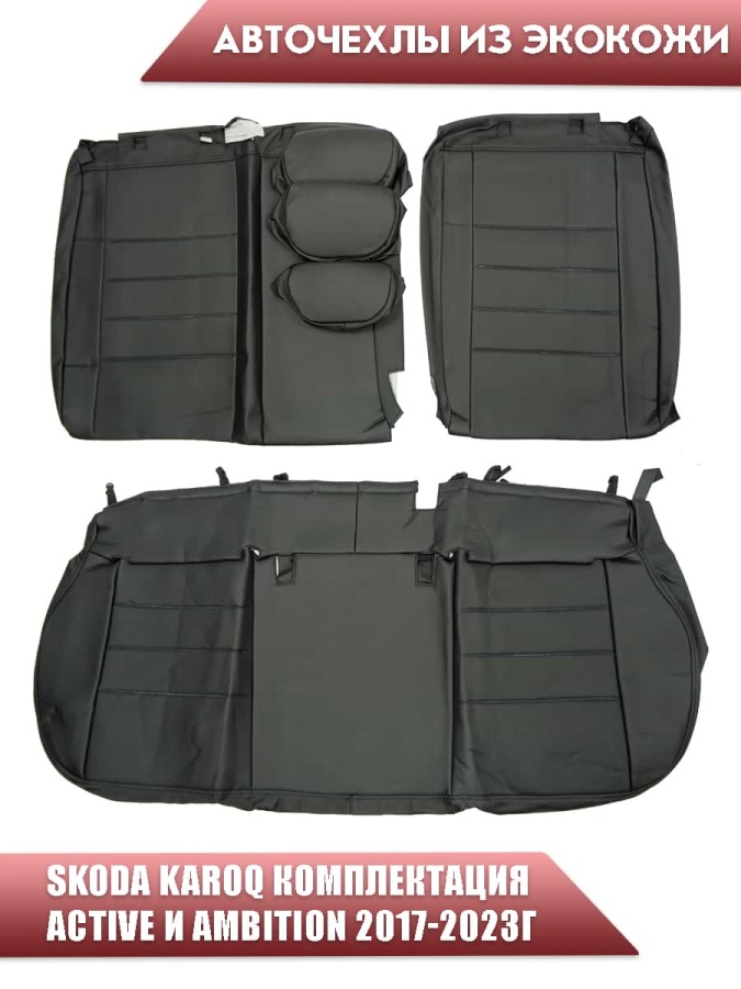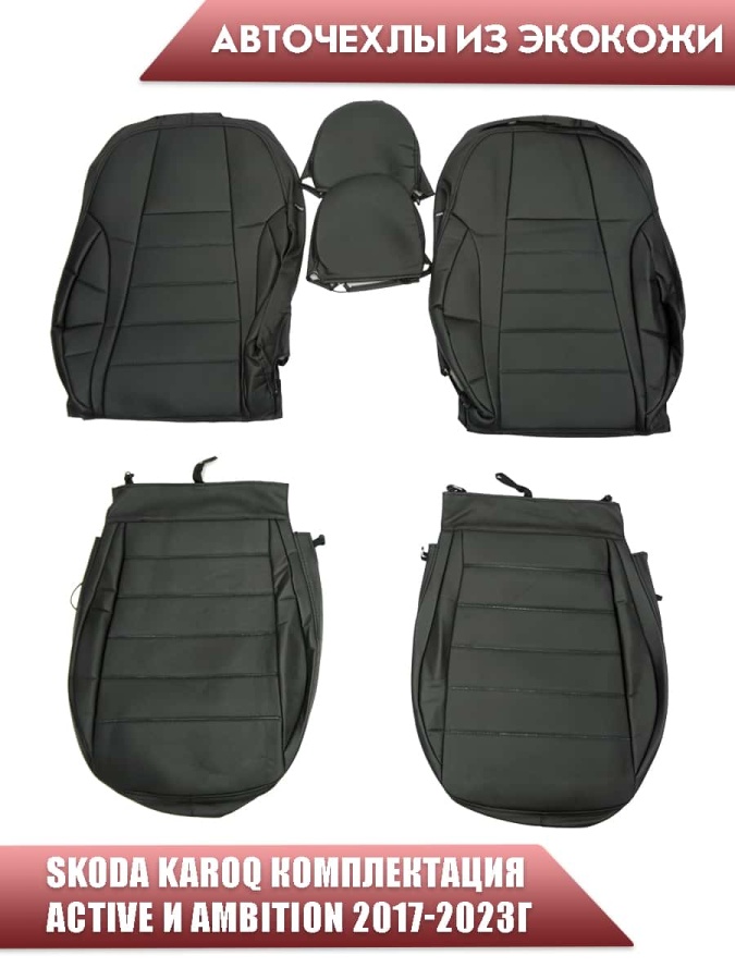 Авточехлы Skoda Karoq Карог комплектация Active и Ambition 2017-2023г экокожа черная сер.нить Динас
