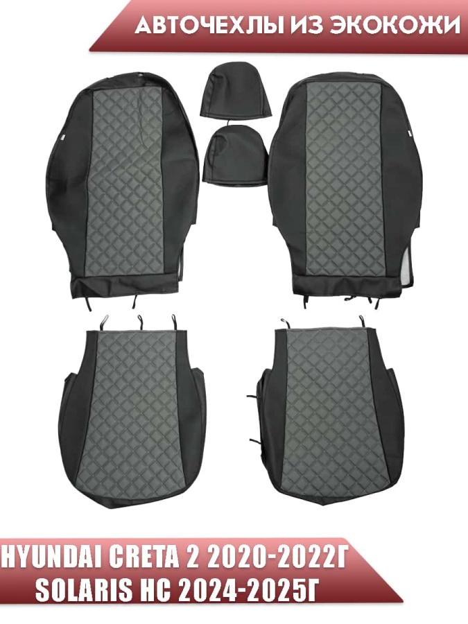 Авточехлы Hyundai Creta 2 Хендай Крета 2 2020-2022г экокожа черно-серый ромб