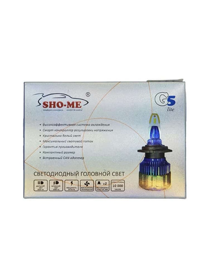 Sho-Me G5 Lite LED 2шт HB3 (9005) 12В 24W 5000K 3000Lm гарантия 1 мес АКЦИЯ!