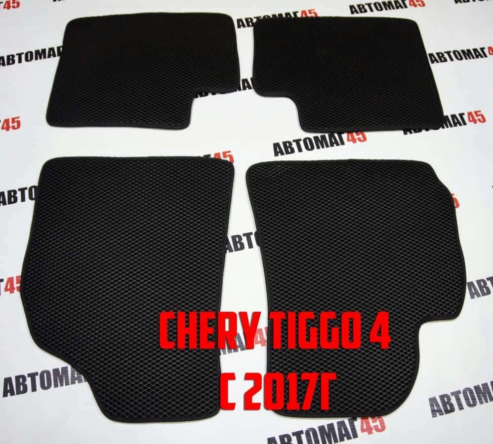 EVA ЭВА коврики в салон Chery Tiggo 4 c 2017г черные рисунок ромб комплект 4шт