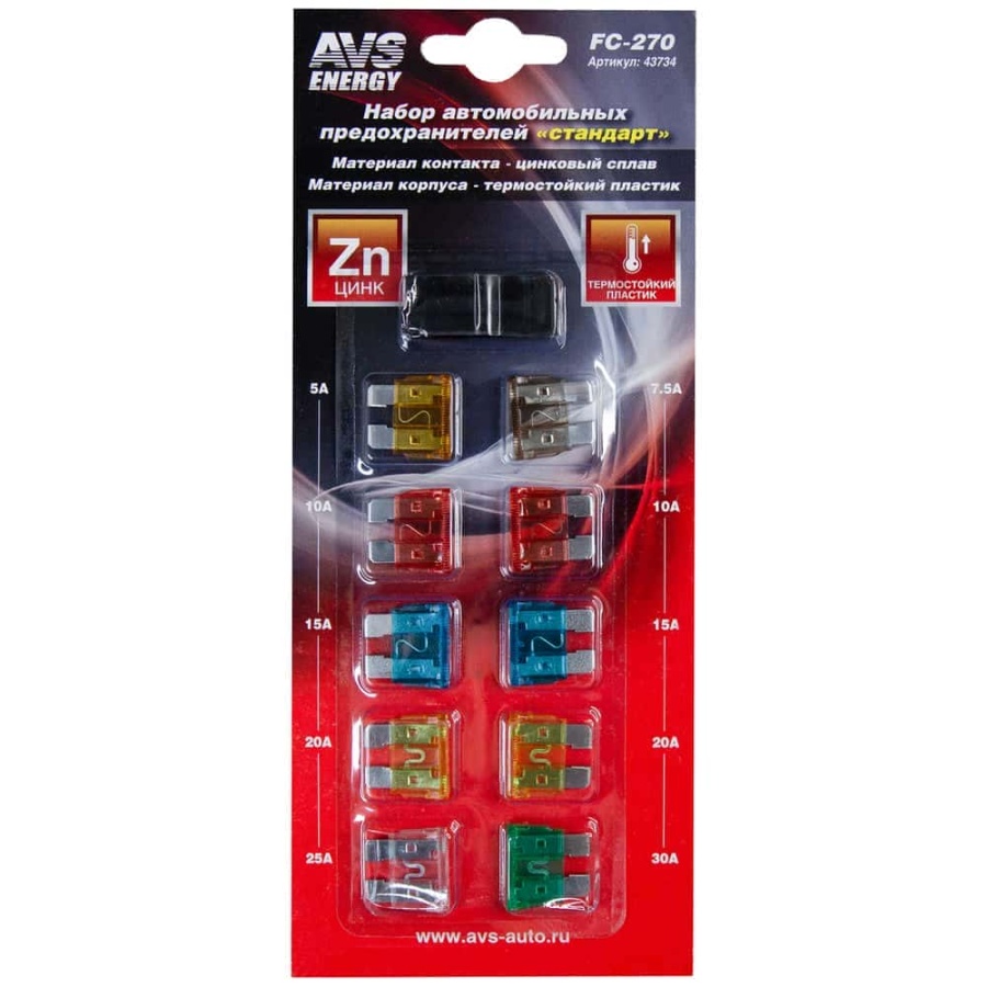 AVS предохранитель флажковый набор 5-30 А с пинцетом блистер 10шт