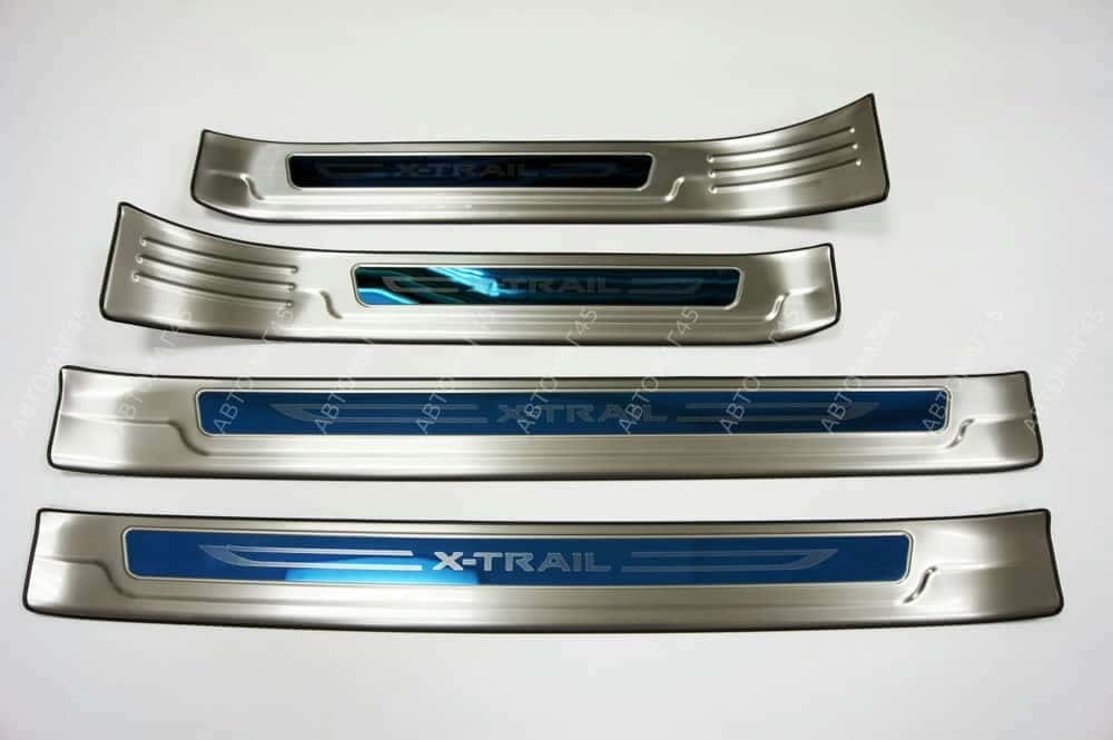 Накладки на внутр пороги Nissan X-Trail T32 Ниссан Х-Трейл Т32 2013-2022г широкие алюминий 4шт