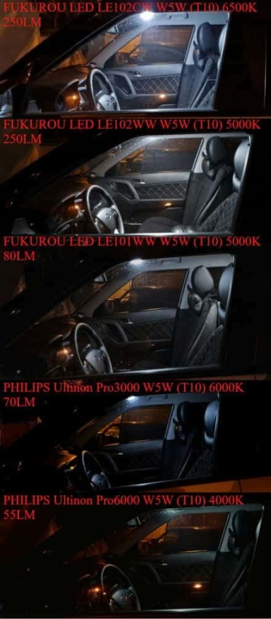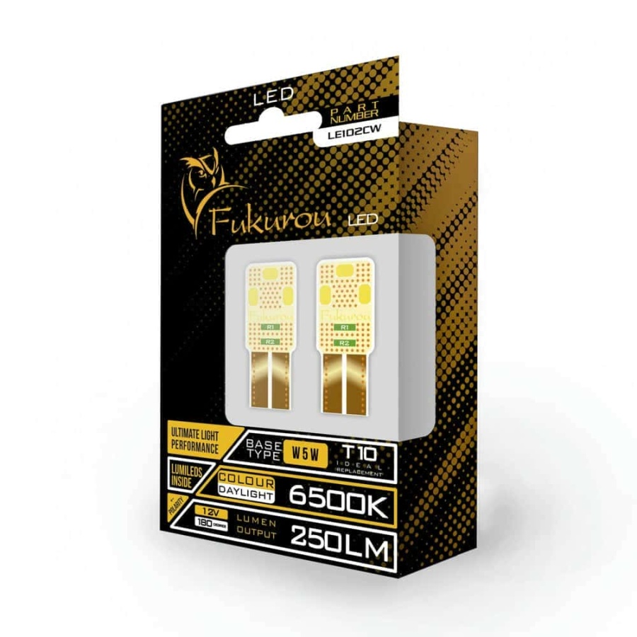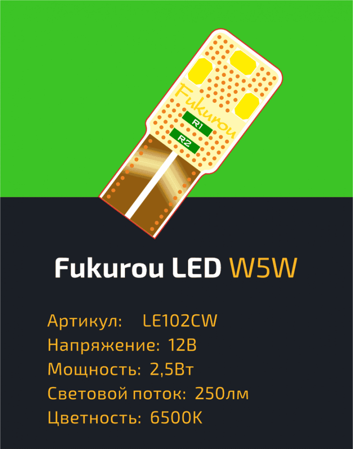 Fukurou лампа светодиодная суперяркие T10 W5W 12V 6500K 250LM 2шт