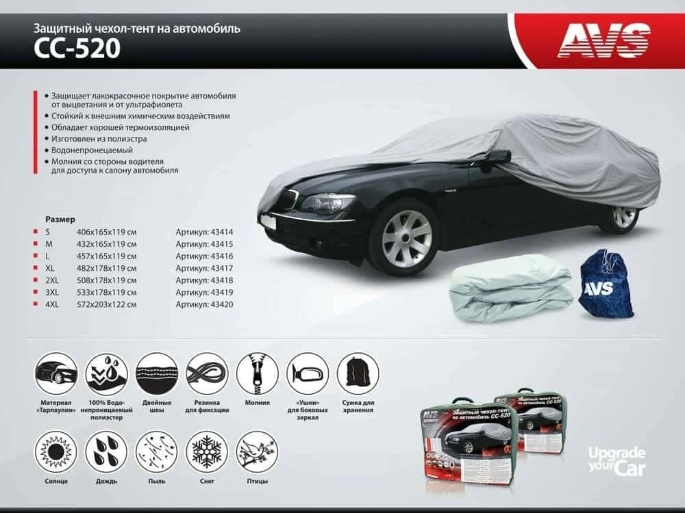 AVS автомобильный тент всесезонный водонепроницаемый CC-520 размер XL 482х178х119см
