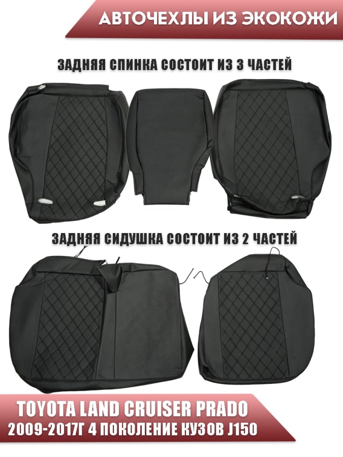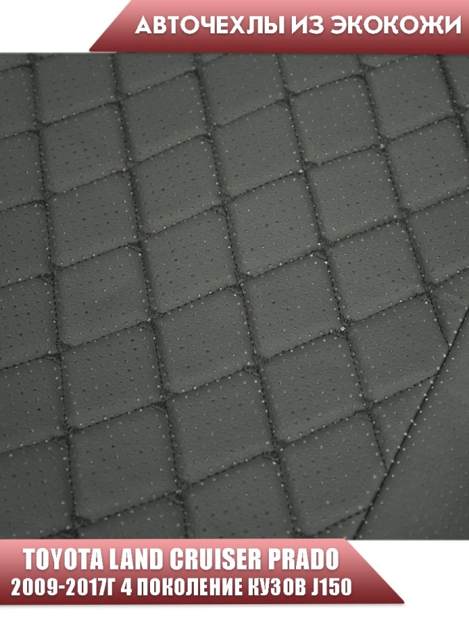 Авточехлы Toyota Land Cruiser Prado 2009-2017г кузов J150 экокожа черная серая нить ромб Maximal