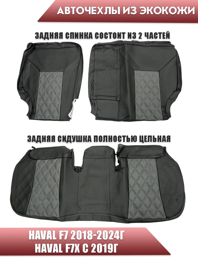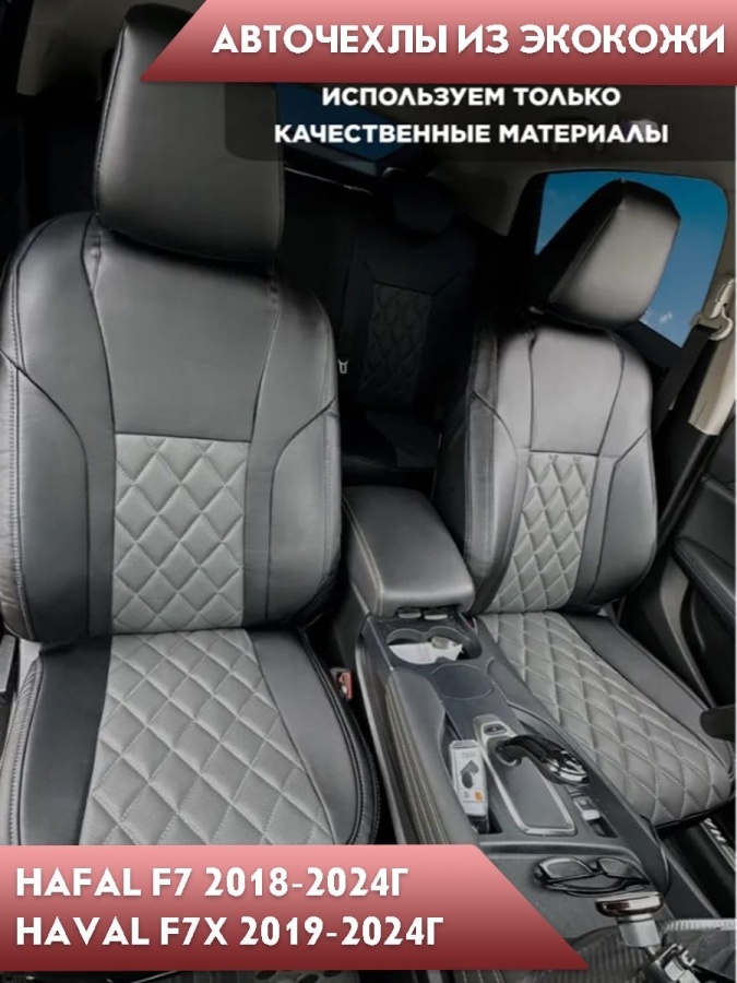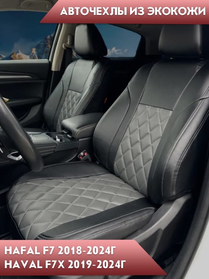 Авточехлы Haval Хавал F7 1пок 2018-2024г F7X 2019г-2024г экокожа черный серый ромб Динас