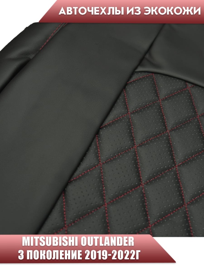 Авточехлы Mitsubishi Outlander Мицубиси Аутлендер 3 пок 2019-2022г экокожа черная красная нить ромб