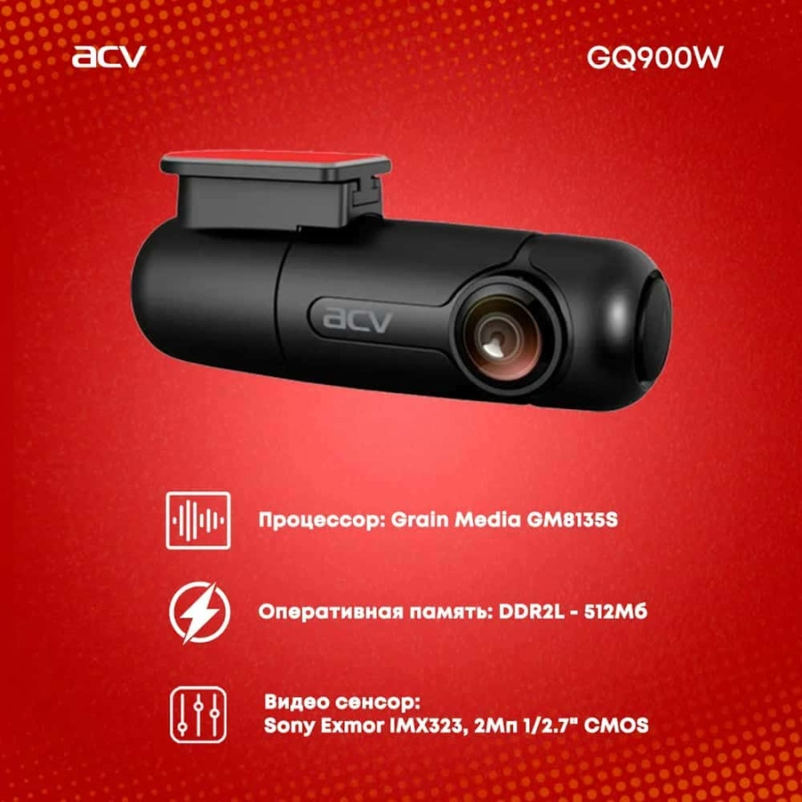 ACV GQ900W WIFI видеорегистратор Full HD 30к/сек 1920х1080 угол 160* G-сенсор управ тел гарант 12мес