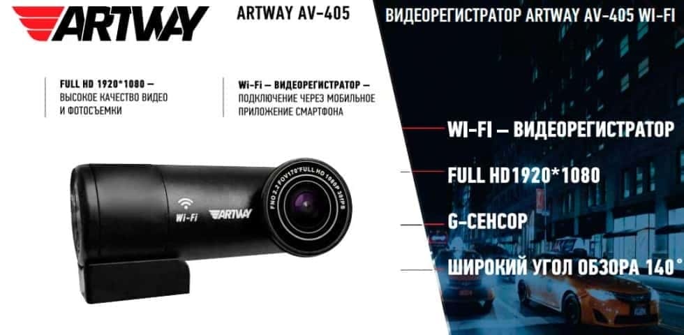 Artway AV-405 WIFI видеорегистратор Full HD 30к/сек 1920х1080 угол 140* гарант 12мес