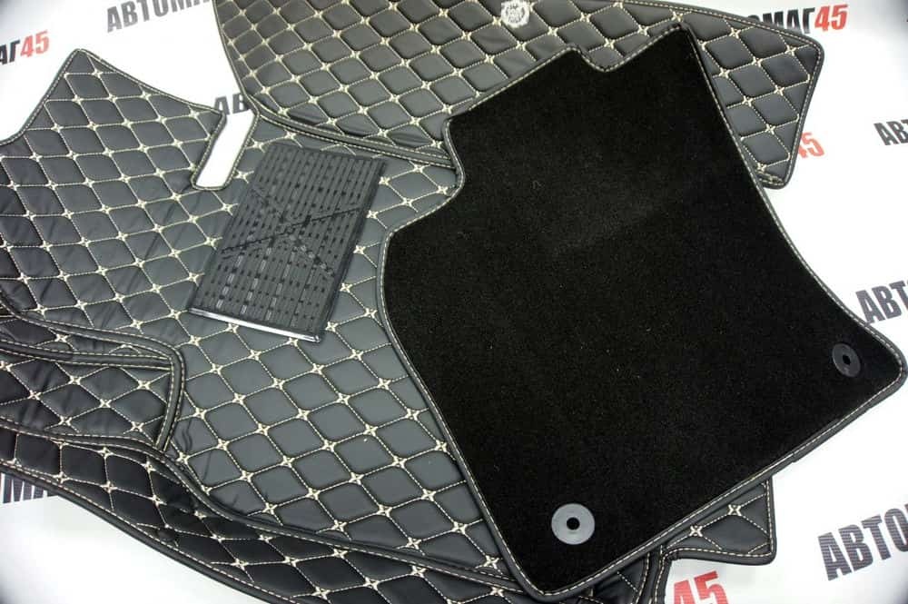 Ковры 5D экокожа Toyota Camry V70 c 2018г черный с бежевой ниткой+ворс комплект АКЦИЯ!
